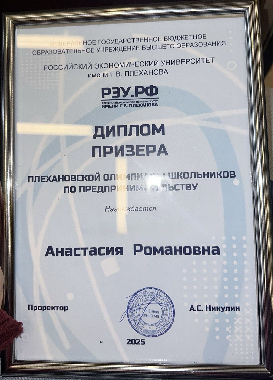 Поздравляем Анастасию с заслуженной наградой! Это отличный результат, который открывает новые перспективы для дальнейшего развития в сфере предпринимательства.