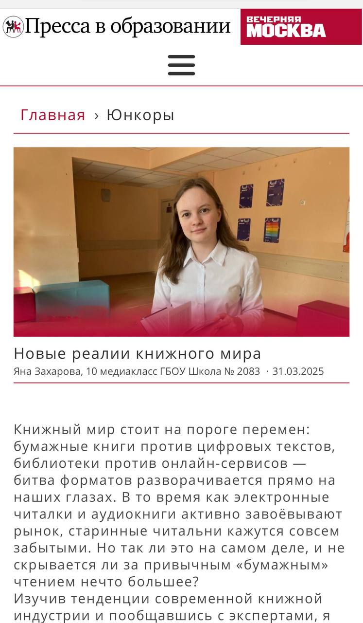 Юный корреспондент не просто описывает две стороны медали, а предлагает читателям задуматься: какой формат чтения станет доминирующим в будущем? В статье представлены интересные наблюдения и аргументы, основанные на личном опыте и исследованиях.