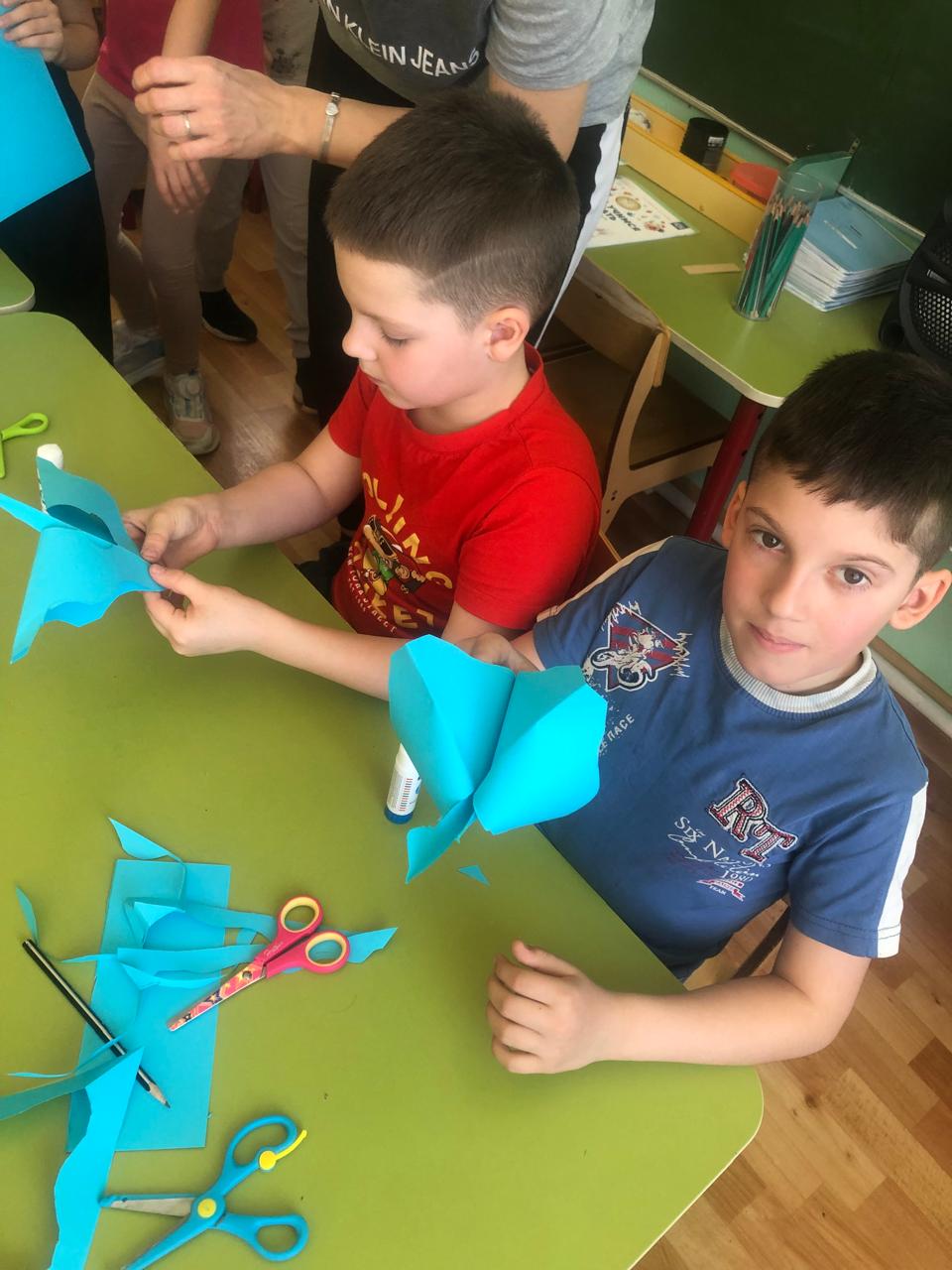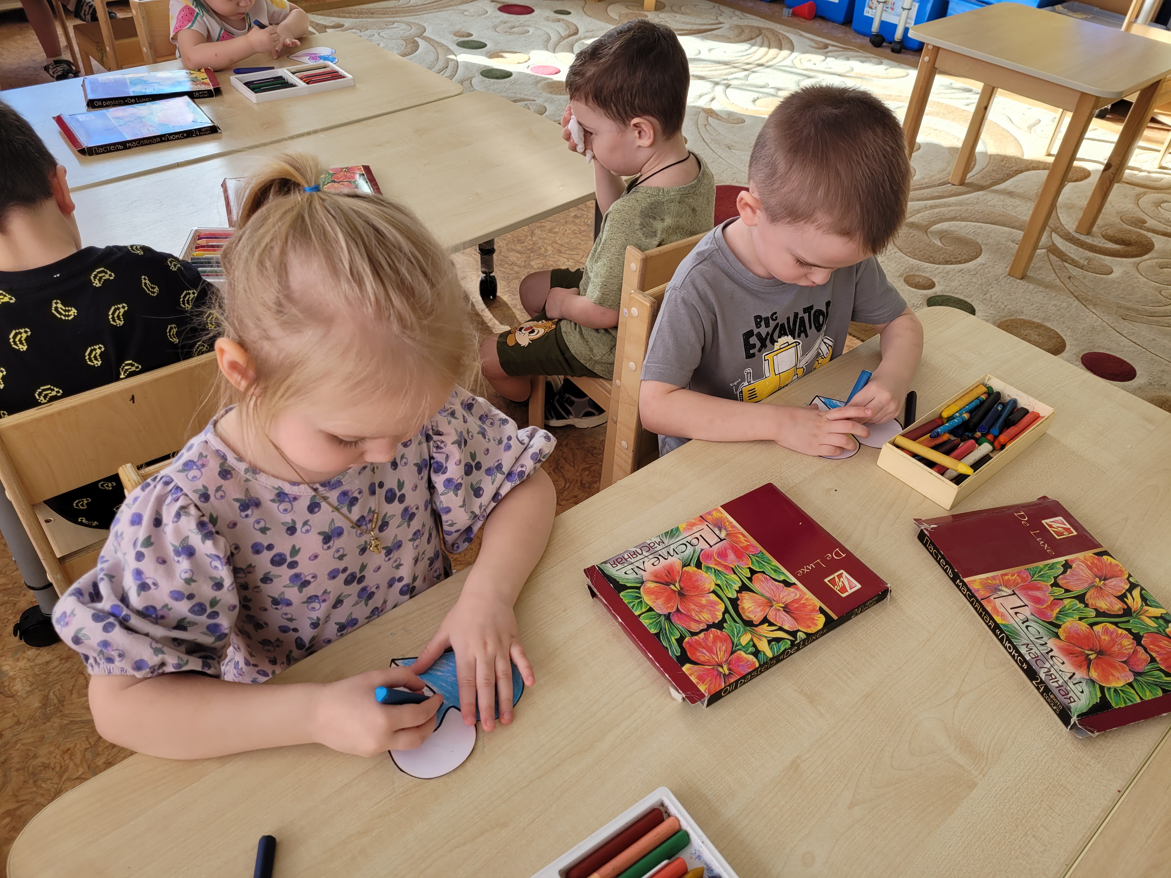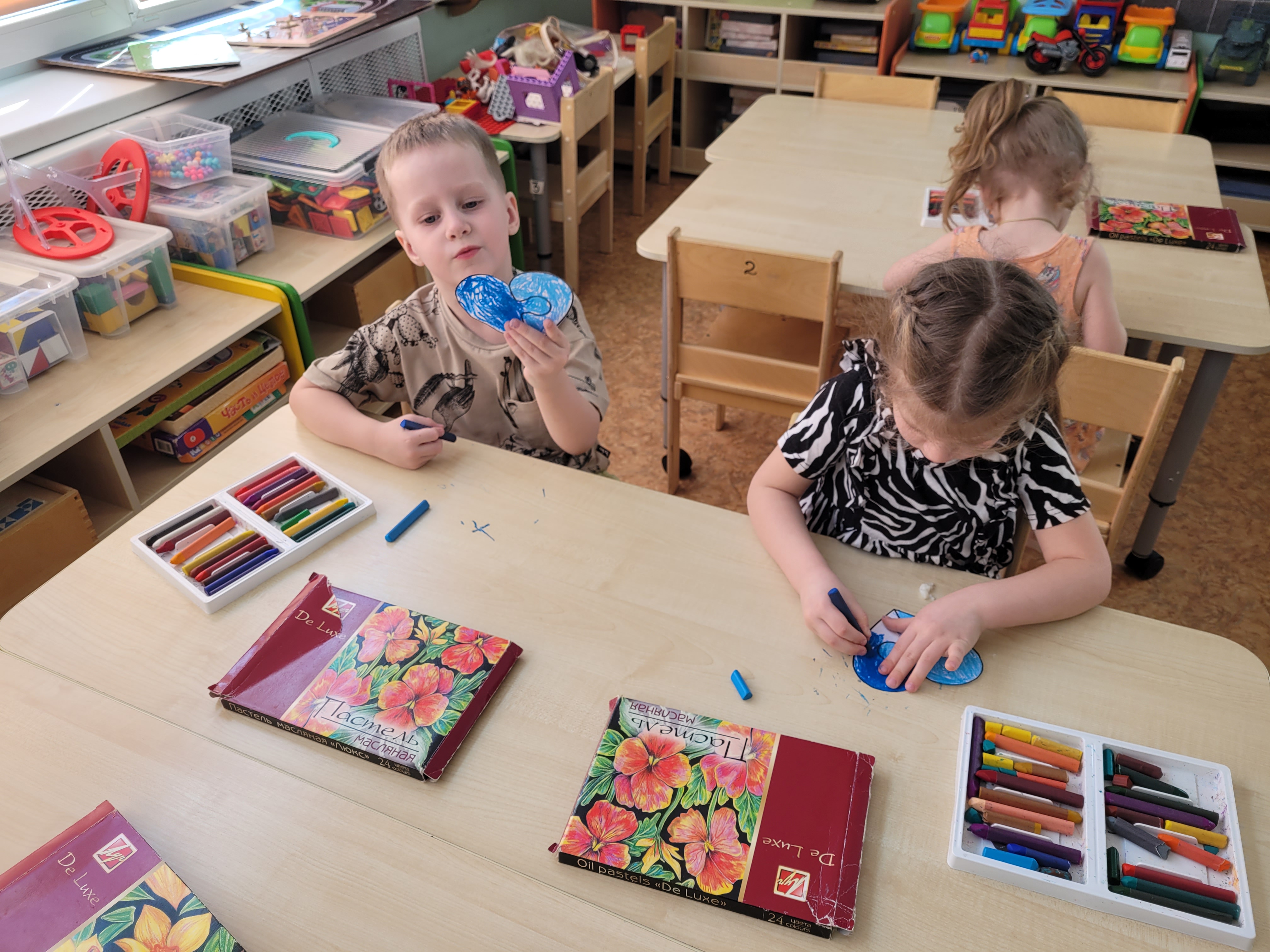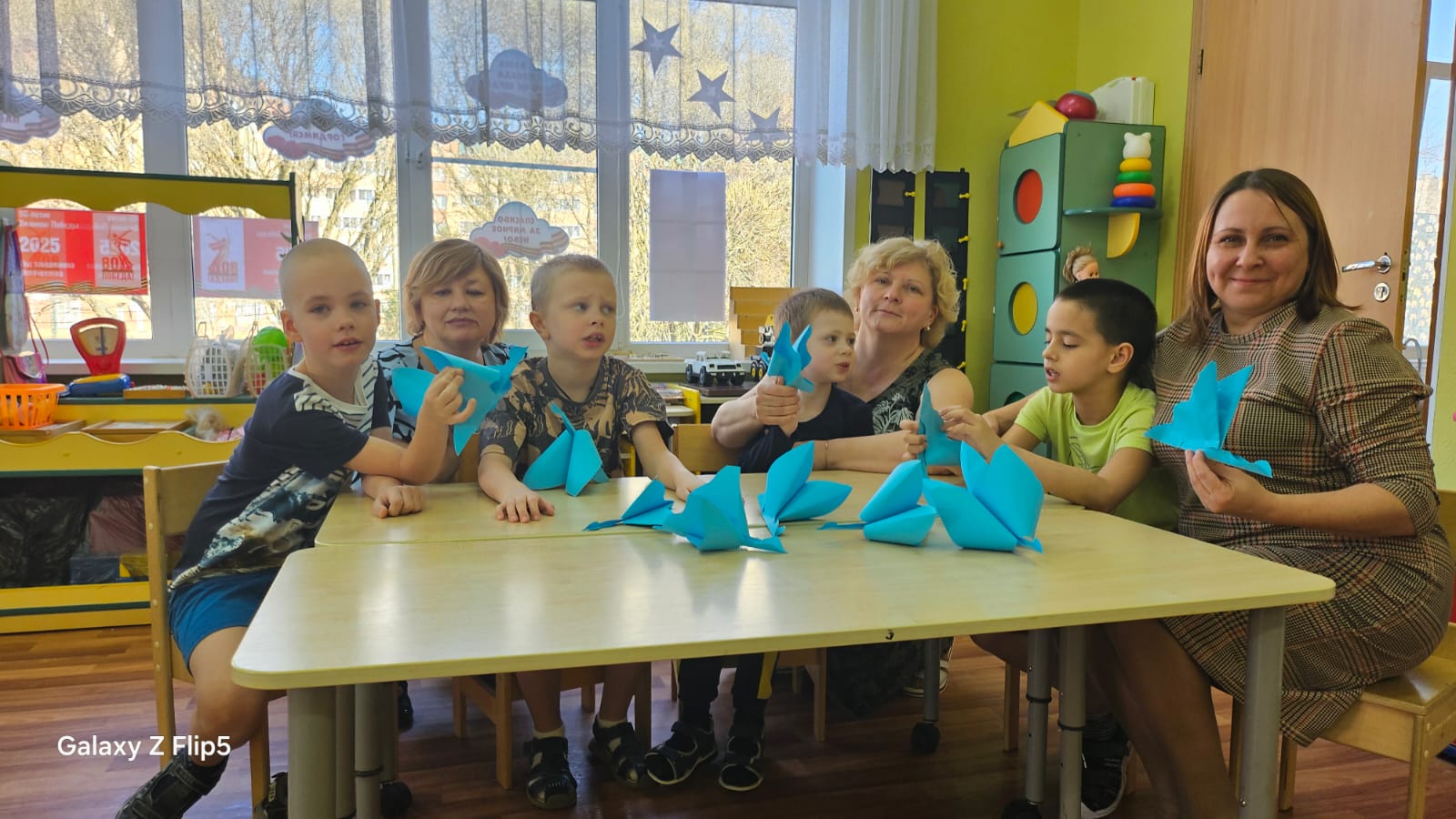 Дети активно приняли участие в беседе, а затем выразили свои впечатления в художественном творчестве: ребята из группы "Солнышко" в знак солидарности к особенным детям раскрасили "Сердце - пазл" а ребята из группы "Искорки" сделали из бумаги "Синих птиц".