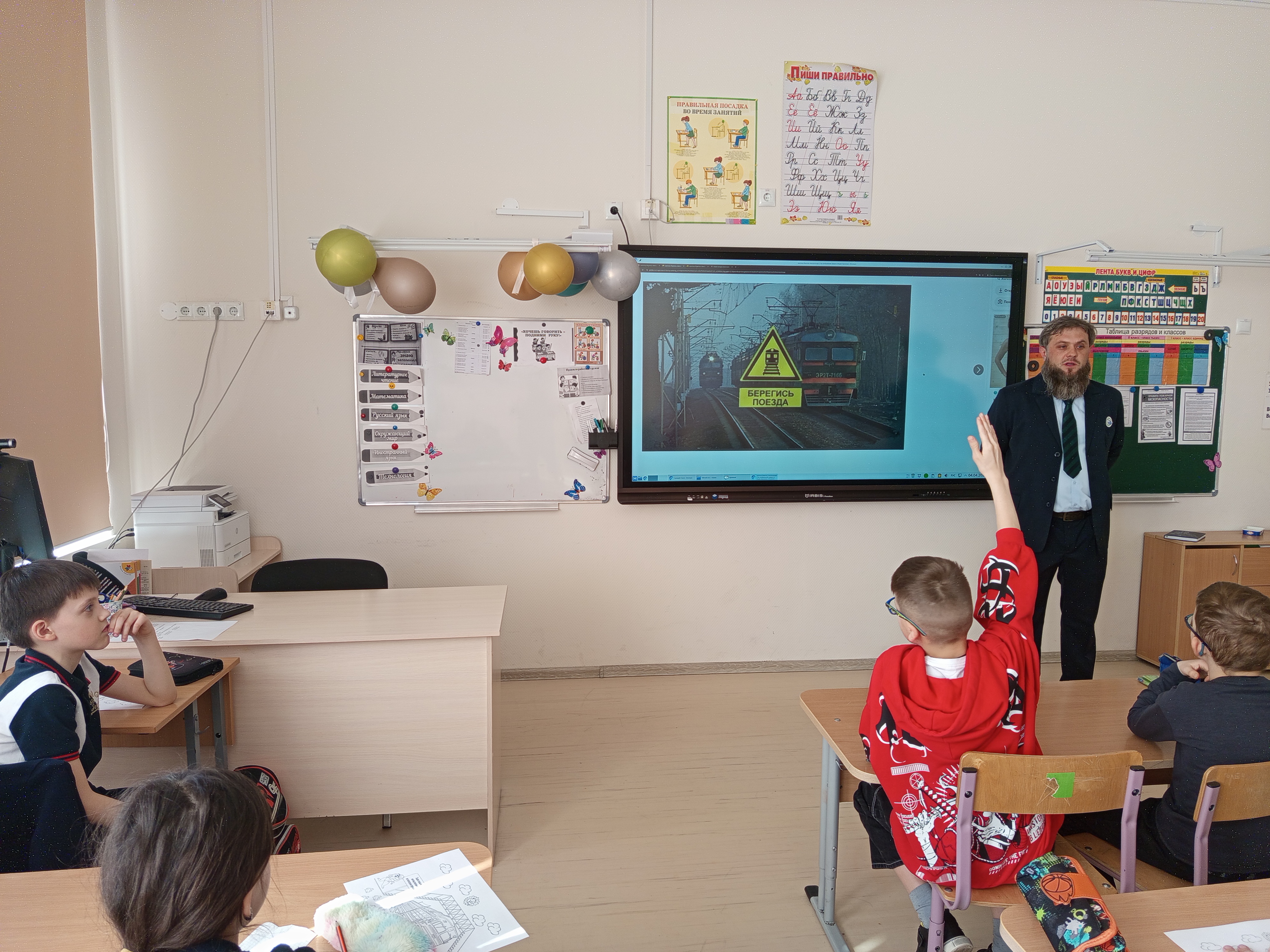 Во время встречи ребята активно задавали вопросы, а опытный машинист подробно рассказал о том, почему железная дорога требует особой осторожности и как избежать опасных ситуаций.