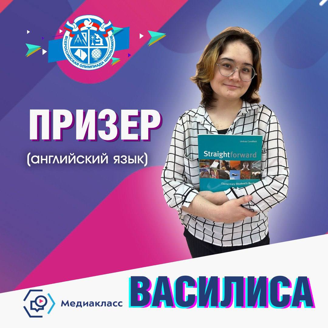 Василиса из 11 “В” медиакласса стала призёром по английскому языку!