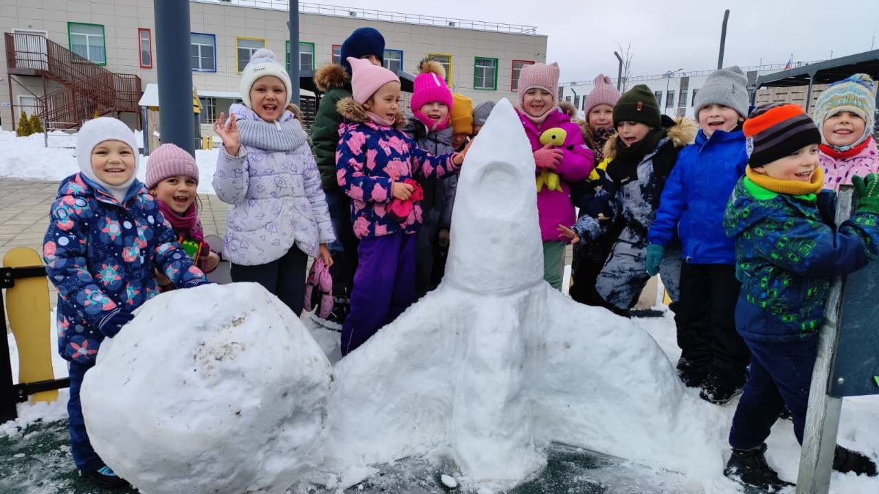 Утренняя новость о приближающемся Дне космонавтики вдохновила малышей на создание особенного снежного арт-проекта. С особым воодушевлением дети принялись за лепку, посвятив свои творческие работы легендарному полету Юрия Гагарина на ракете «Восток». Каждый снежок превращался в частичку космической истории, а каждая фигурка становилась символом человеческого подвига.