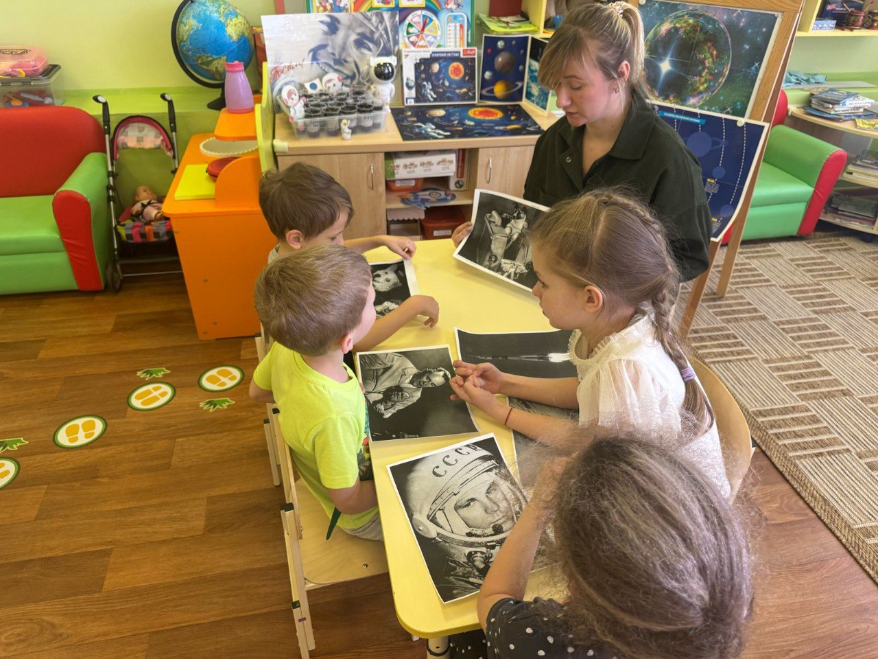 Параллельно в группе «Снежинка» развернулась своя космическая экспедиция. Юные исследователи начали свое путешествие с захватывающей беседы о Лайке - первой четвероногой покорительнице космоса. История о смелости и преданности этой удивительной собаки произвела на детей неизгладимое впечатление.