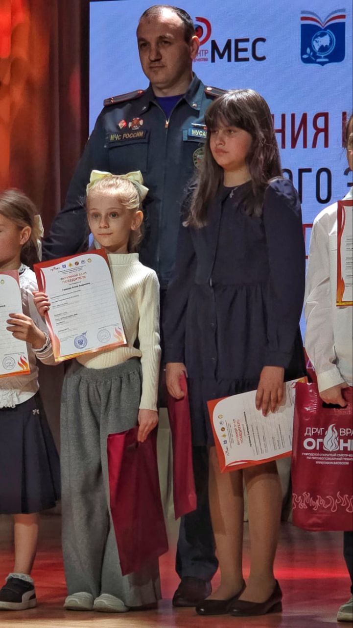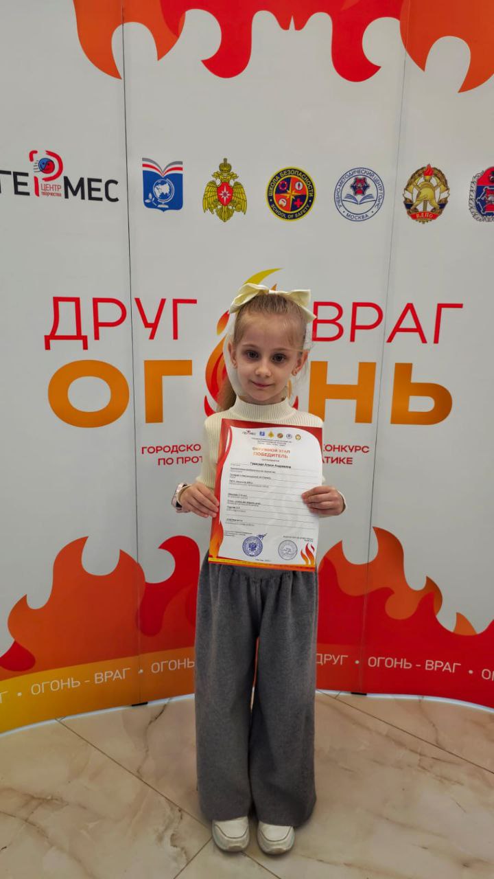 Всегда приятно, когда самые юные дети получают высокие награды и признание. Алиса стала победителем окружного этапа ТиНАО в номинации "Художественно- изобразительное творчество". Ее рисунок "Огонь-угроза для каждого дома". Розитта стала лауреатом окружного этапа ТиНАО в номинация «Вокальное искусство» с песней «Песня о пожаре». Илья ученик 3 "ВС" класса стал лауреатом окружного этапа конкурса в номинации "Художественное слово и ораторское искусство " со стихотворением "Огонь".