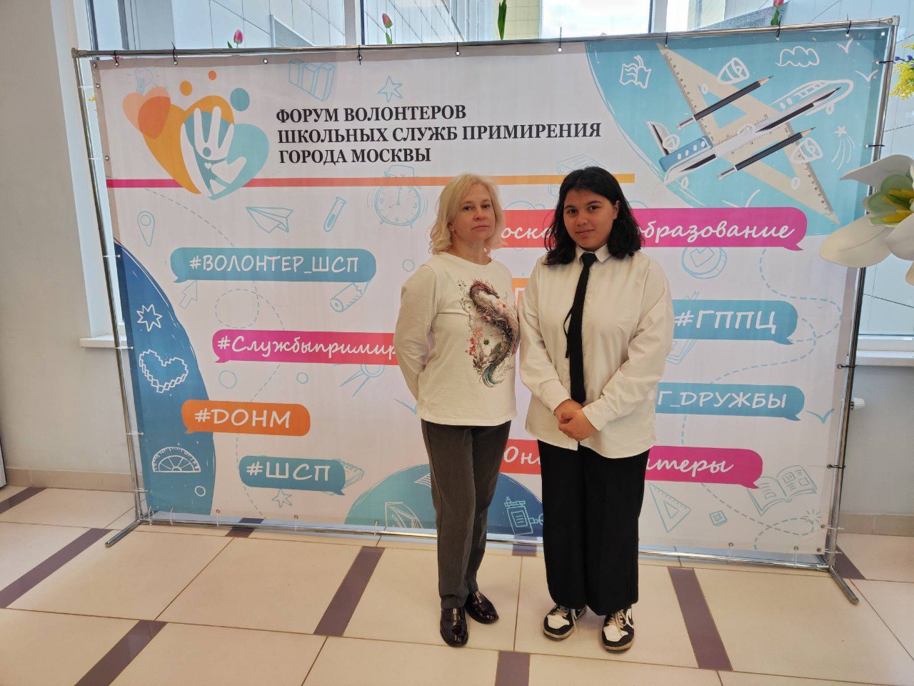 Школа 2083 была представлена яркой командой: опытный куратор Марина Владимировна Разина и талантливая участница конкурса «Мастерство юных волонтёров» Марика. Их участие в форуме – это не просто визит, а активная работа над собой и своими навыками.