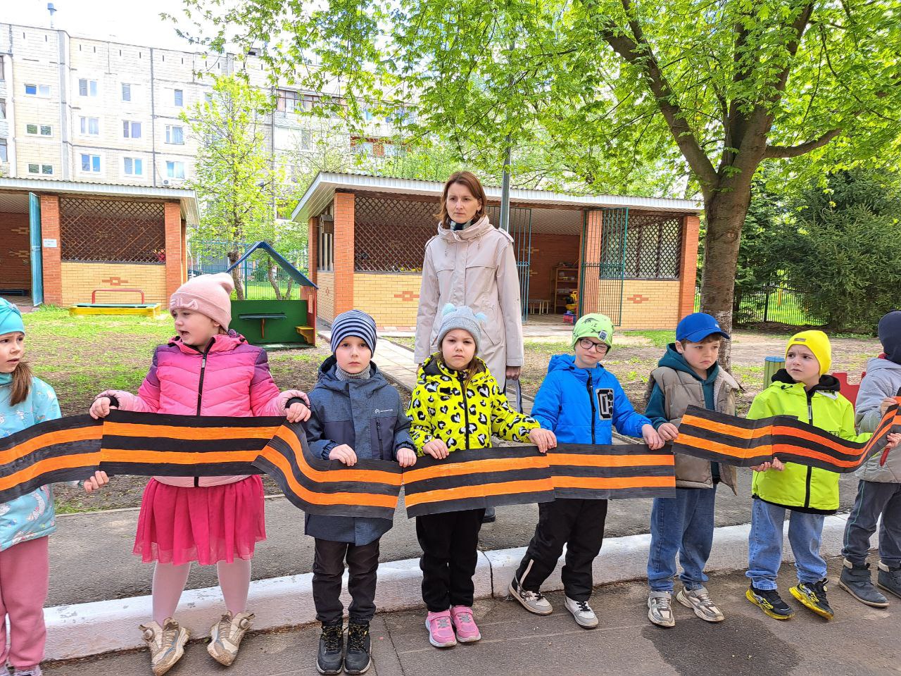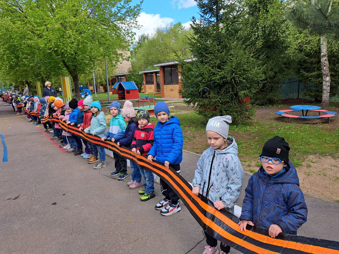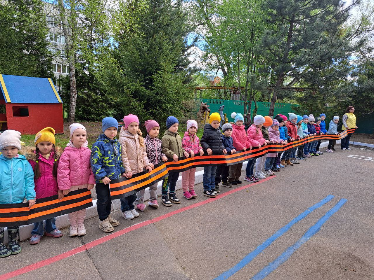 Кульминацией мероприятия стала торжественная церемония на свежем воздухе. Во время прогулки дети объединили свои самодельные ленточки в одну большую, символизируя единство поколений. В память о героях была объявлена минута молчания, после чего воспитанники хором произнесли клятву: «Помним! Гордимся! Чтим!»