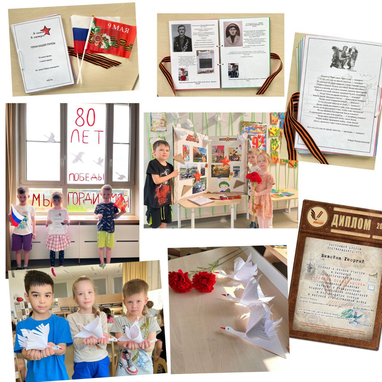 Воспитанники детского сада «Кораблик» приняли участие во Всероссийской акции «Окна Победы — 2025», мастер-классе по изготовлению бумажных журавлей и создали «Книгу памяти», а еще организовали выставку рисунков.