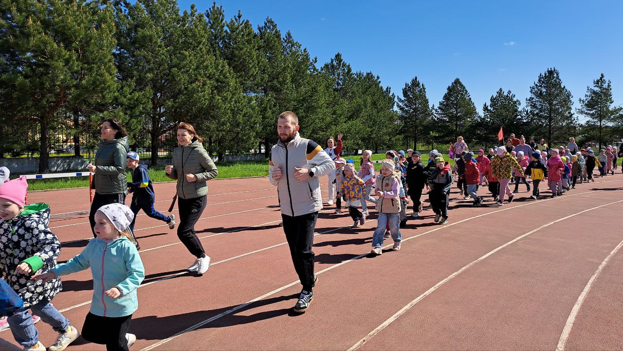 Массовый забег «Наследники Победы» объединил около ста воспитанников детского сада «Сказка» на стадионе «Подолье». Под песню «День Победы» дети преодолели дистанцию, ощущая единство духа и силы. Все участники забега доказали своё право называться наследниками Победы, а троекратное «Ура!» стало ярким завершением мероприятия.
