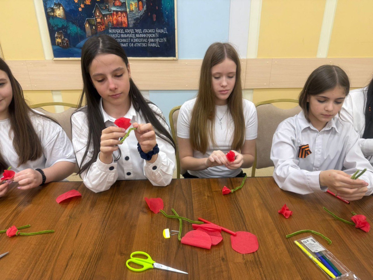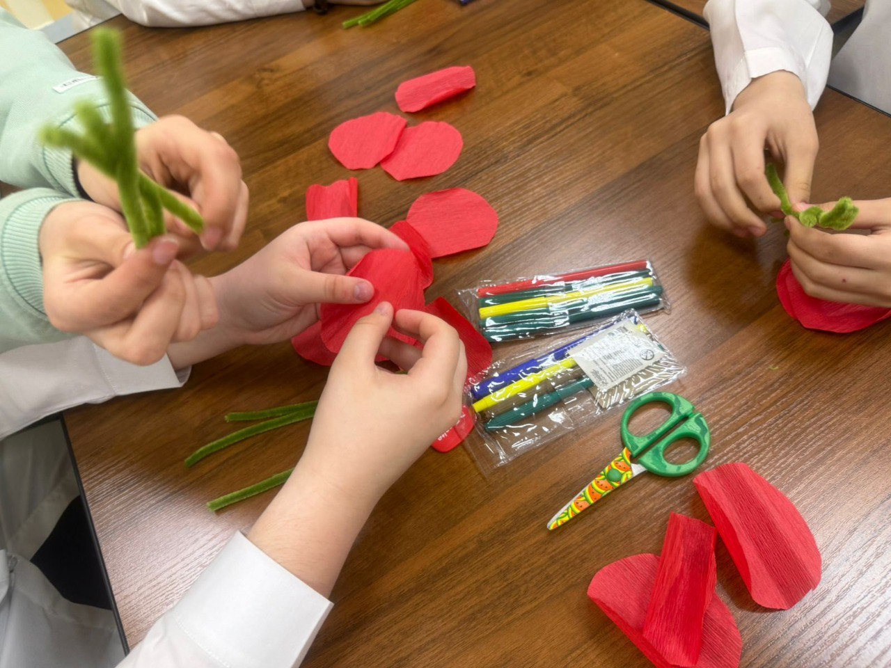 Но самым трогательным моментом стал мастер-класс по изготовлению гвоздик Победы. Школьники вложили в свои поделки чувства и мысли о мире и тех, кто за него сражался. Гвоздики стали символом связи между поколениями.