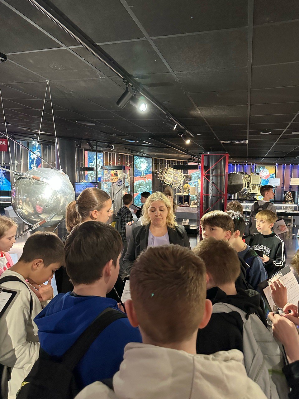 Наши юные исследователи с горящими глазами погрузились в мир космических вычислений. Окружённые впечатляющими экспонатами, они решали математические задачи, словно настоящие космонавты: вычисляли расстояния до далёких планет и время, необходимое для космических путешествий.