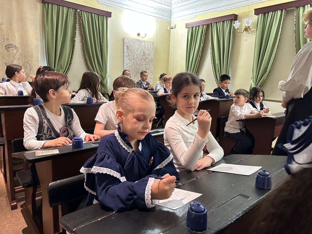 Особое впечатление на детей произвело письмо пером. Ребята с восхищением наблюдали, как чернила оставляют след на бумаге, и с энтузиазмом экспериментировали с различными стилями написания букв. Это необычное занятие позволило им прочувствовать, насколько сложным и изящным искусством было письмо в прежние времена.