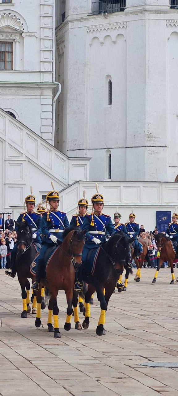 Дети с большим интересом слушали рассказ экскурсовода о коронации русских царей и важных исторических событиях, происходивших на территории Кремля. Также мальчишки и девчонки стали свидетелями церемонии развода караулов Президентского полка, которая проходит в Московском Кремле с 2004 года. Программа церемонии включает построение, выход роты специального караула Президентского полка, выход Почётного кавалерийского эскорта.
