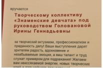 Творческий коллектив «Знаменские девчата» (Московское долголетие) получил высокую награду за свое выступление в честь Дня Великой Победы! Грамота была вручена руководителем Центра московского долголетие «Щербинка 2» Надеждой Владимировной Дашдамировой за творческий энтузиазм, высокий профессионализм, преданность делу и вклад в сохранение памяти о Великой Победе.